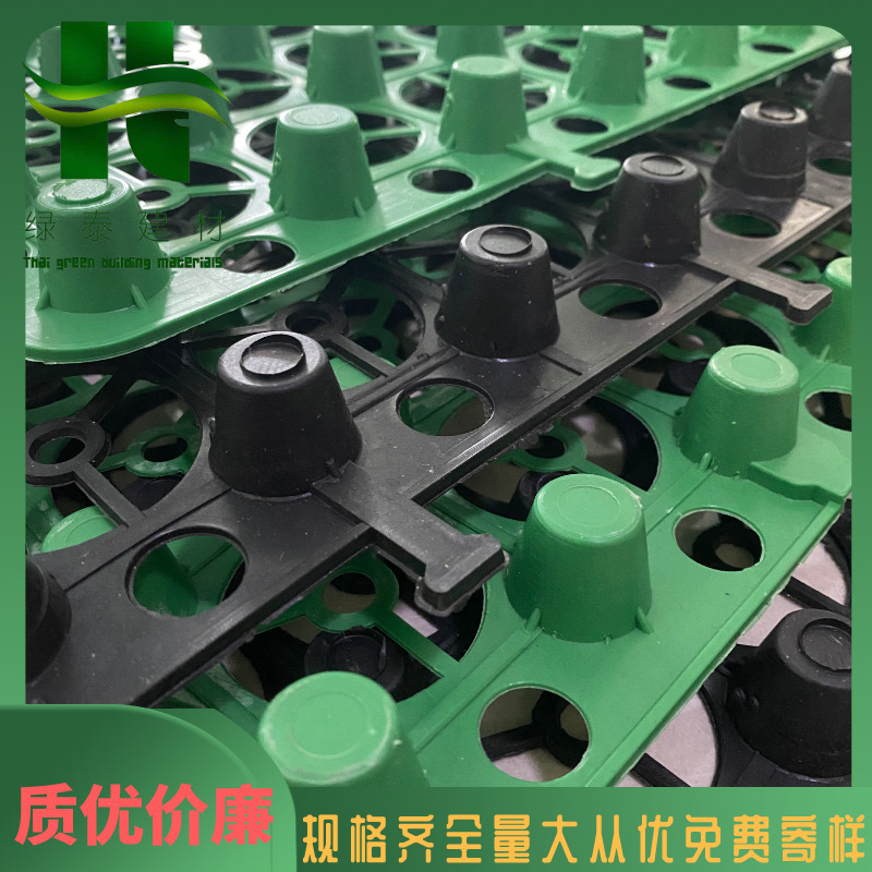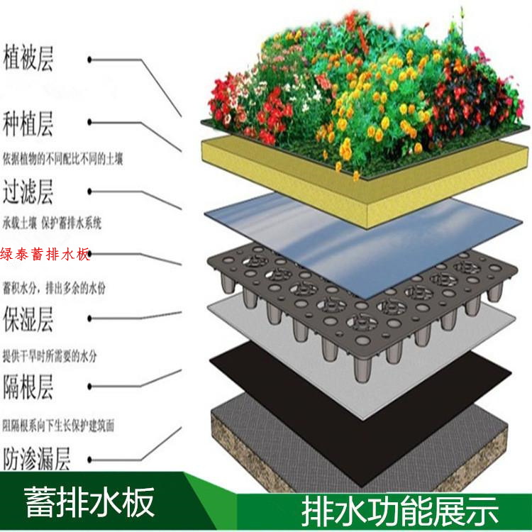 蓄排水板采用聚乙烯或聚丙烯經(jīng)加熱加壓定型形成的一種既能營造具有立體空間支撐剛度的排水通道,又可蓄水的一種輕型板材。該種板材自身就具有蓄水、排水兩種綜合功能,板材具有空間剛度極高的特點(diǎn),抗壓性明顯優(yōu)于同類產(chǎn)品(可以通過現(xiàn)場(chǎng)試驗(yàn)檢驗(yàn)),能夠承受400Kpa以上的高抗壓負(fù)荷,同時(shí)可以承受在種植頂板回填土過程中機(jī)械碾壓的極端負(fù)荷情況。