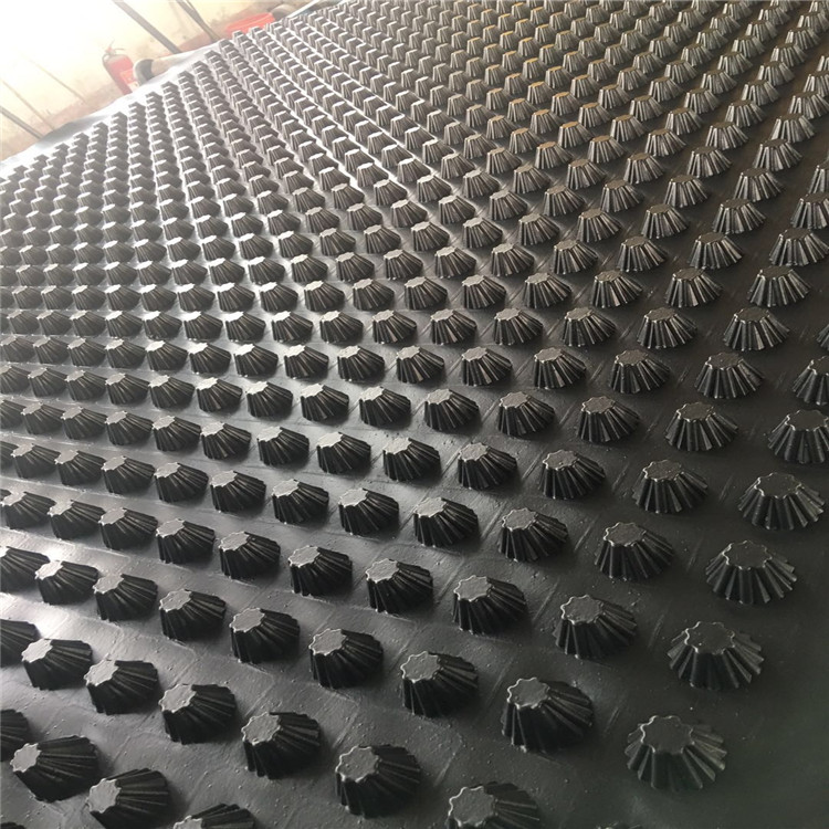 圓錐突臺的頂面膠接一層過濾土工布,以阻止泥土微粒通過,從而避免排水通道阻塞使孔道排水順暢。 傳統(tǒng)的排水方式使用磚石瓦塊作為導(dǎo)濾層、使用較多的鵝卵石或碎石作為濾水層、將水排到指定地點(diǎn)。而用排水板取代鵝卵石濾水層來排水則省時(shí)、省力又節(jié)能、節(jié)省投資、還能降低建筑物的荷載。